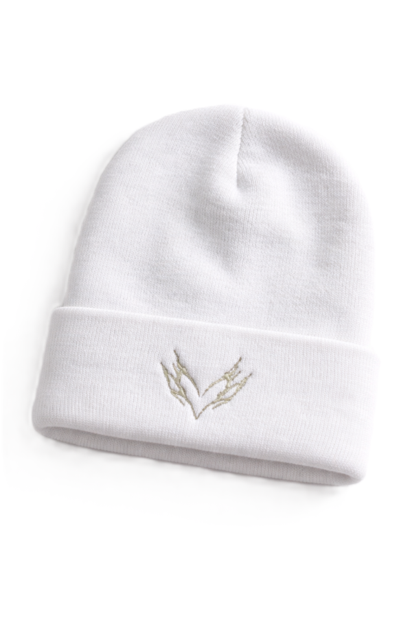 Gorrito blanco de lana con dos bordados a en color hueso.